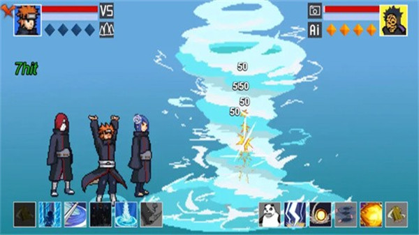 这里呈现的是青年时期的超哥,他有着全新的角色设定与防反机制。弥彦的技能主要包含两种不同形态的水遁术以及武士刀攻击,同时具备特殊的防反机制,该机制要求在合适的时机与对手的攻击进行对拼,而他的奥义则会召唤长门和小南一同发起协同攻击。