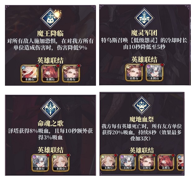 三、魔王阵容里不存在真实伤害,仅有拉姆达和特乌斯能够打出与血量挂钩的伤害(和真伤效果相近),到了后期要挑战战力更高的关卡推进地图,缺乏真伤的话确实会比较吃力