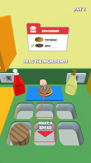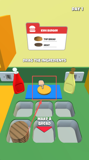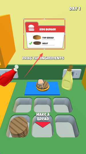接着,根据订单要求,拖动相应的食材到工作台上。