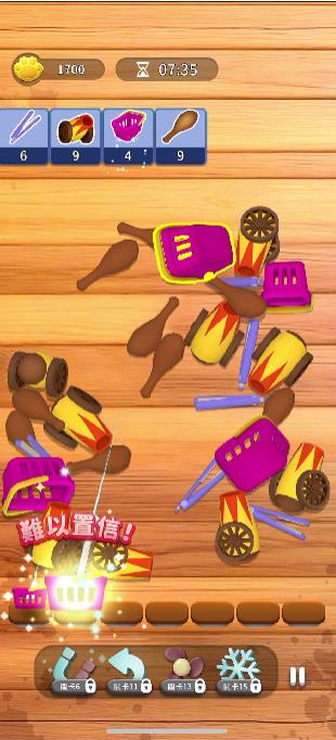2、观察关卡中的物体,快速找到三个相同的并点击完成消除。