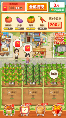 2、每完成一笔订单,我们都能获得相应的丰厚奖励,而且还会持续解锁更多农作物,让经营内容更加丰富。