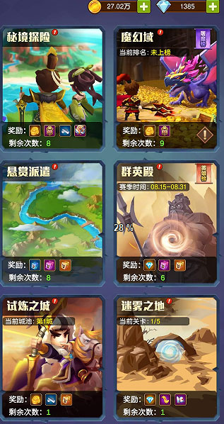角斗场、魔幻域、秘境探险等全新玩法,操作简单尽享策略的乐趣!