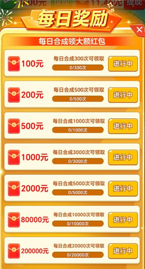 2、合成一定次数,就能完成任务,自然可以领红包。