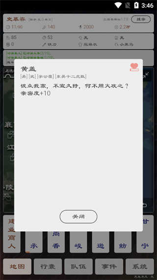 6、玩家可以点击下方的武将名字来进行战斗和交谈;