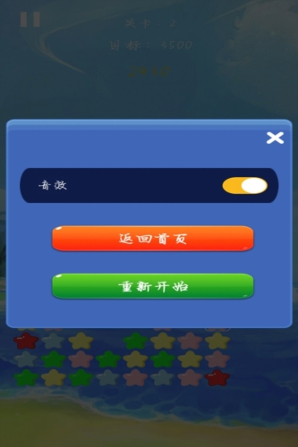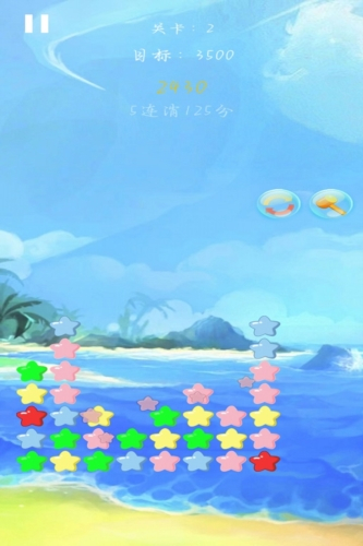 通过消除更多的星星来获得更高的分数,越往后,需要获得的分数越高,也就意味着游戏的难度在不断的增加。