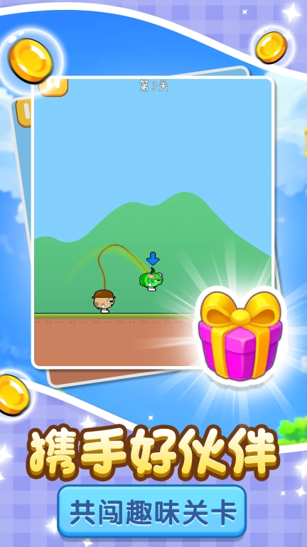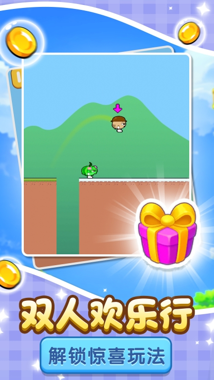 《双人闯关》是一款趣味闯关游戏,支持双人合作游玩,也能单人操控两个角色,多样关卡与精巧机关等待你们默契配合解锁!不管是情侣间的甜蜜互动、朋友间的欢声笑语,还是亲子间的温馨陪伴,这款游戏都能带来无穷欢乐。快邀请你的伙伴,一同欢乐玩耍吧!