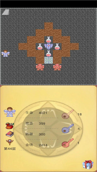 取得18层左侧红宝石,右侧暂不触碰(目前实力不足以应对),此时攻击力已达到68,可轻松击败大蝙蝠。