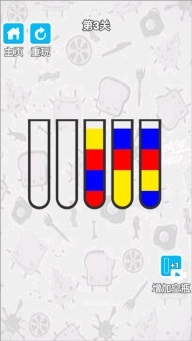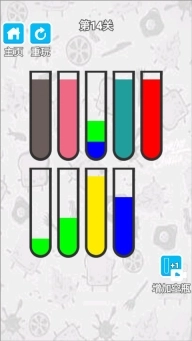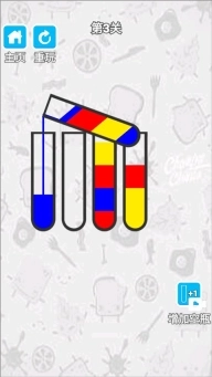 3、当瓶子被同一种颜色的液体完全倒满时,即可顺利通关,通关后能够获得金币奖励。