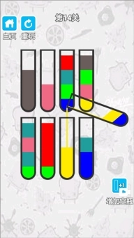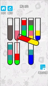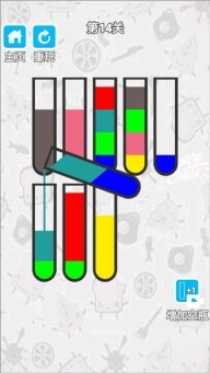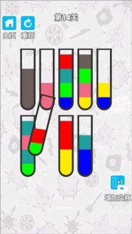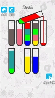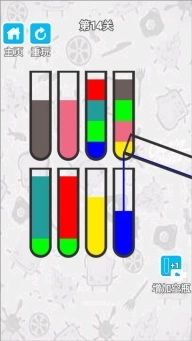 2、玩家点击瓶子将同一颜色的液体放到一个瓶子里;