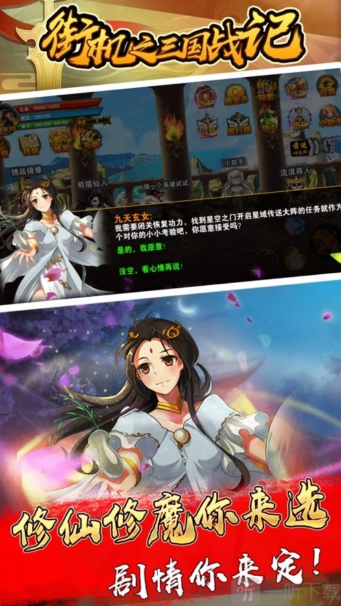 1. 游戏选取三国时期的经典战役,结合街机的趣味玩法,使玩家在诙谐的剧情里,体验三国时代的经典战斗。