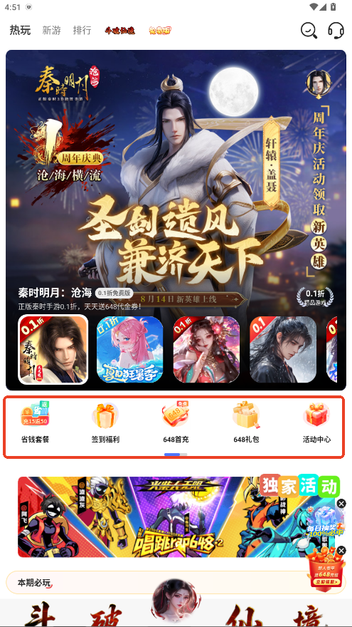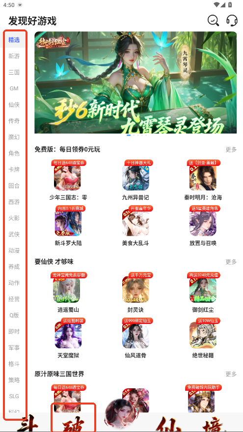 1.在发现页面可以按角色扮演、休闲益智、竞技对战等分类浏览游戏。