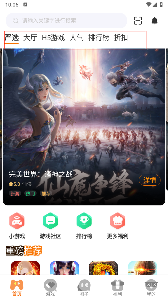 2、启动软件后,首页会展示人气推荐、排行榜以及折扣区等内容。通过下拉页面,您可以发现更多精彩游戏,满足不同需求。