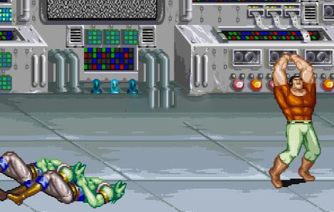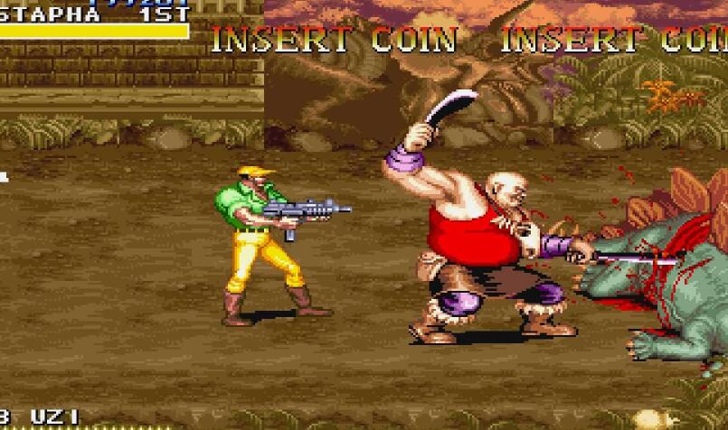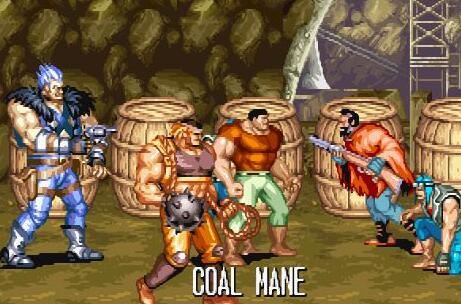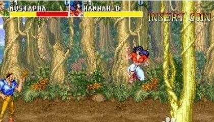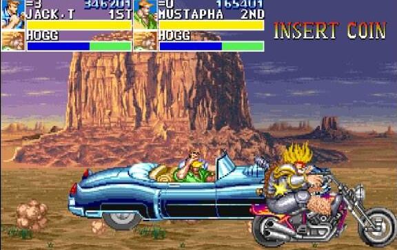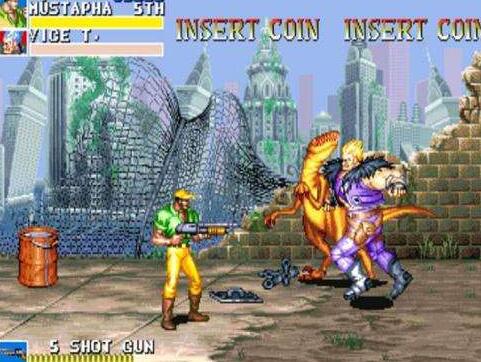 《恐龙快打》(Cadillacs and Dinosaurs)由日本CAPCOM公司推出,改编自1993年美国CBS播出的《Xenozoic Tales》,以“恐龙”这一经典商业题材吸引玩家。故事背景设定在26世纪,此时恐龙与人类共同生活。这部作品里,道具的功能被大幅强化:所有武器类道具都带有弹药限制,弹药耗尽后就只能当作一次性投掷道具使用,玩家甚至能夺取Boss的武器进行反击;木桶这类容器道具也不再只是被打破获取物品,还能被举起投掷出去。另外,《恐龙快打》延续了Capcom一贯的多样攻击方式,游戏中还有不少有趣的Bug,是一部保持了高水准的动作热斗作品。