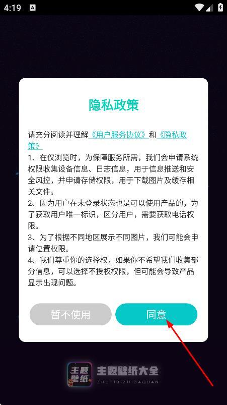 1、在隐私政策的弹窗中,点击同意,进入软件。