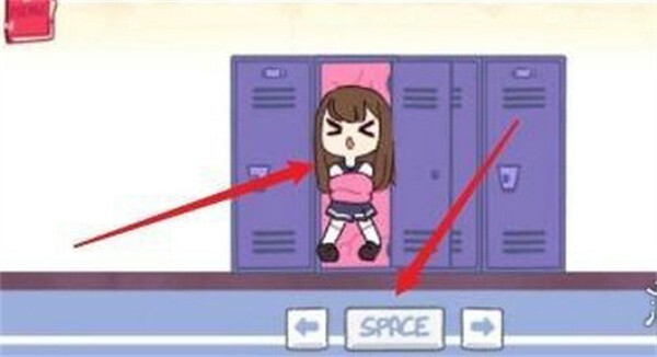 1、游戏里面有左右两个按键,在柜子里面发在道具口香糖。