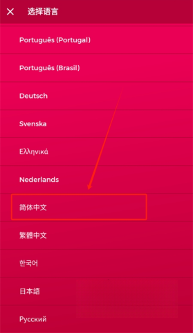3、在语言列表里点击下拉按钮,找到并选中【简体中文】,这样就能完成设置了。