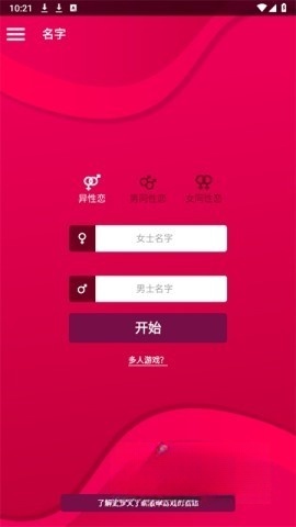 1、新用户初次进入游戏时,需选择自身的性取向,并填写情侣双方的姓名信息。