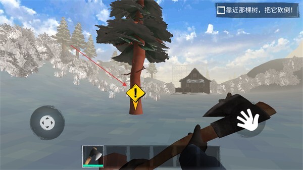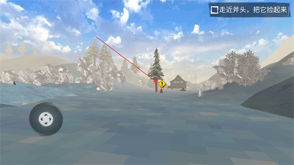 1、游戏开始后,使用左下角摇杆移动角色,靠近地上的斧头并拾取,获得你的第一件生存工具。