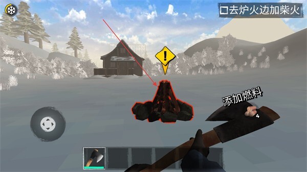 4、将木材带到营火或火炉旁,点击【添加燃料】按钮,维持火堆不灭,确保能在严寒中存活。