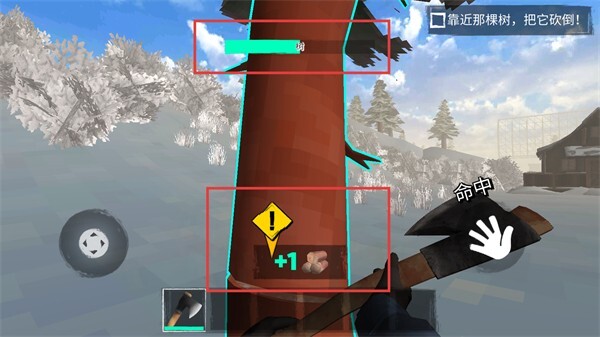 2、移动到树木旁边,点击交互键使用斧头砍树,这是获取资源的关键第一步。