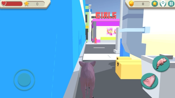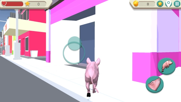 1、游戏将从小猪的视角来推进,你可以通过滑动左侧的虚拟摇杆,来操控小猪进行移动。