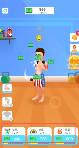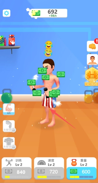 2、在升级界面使用金币提升训练强度,可分别强化动作速度与负重能力两个维度。