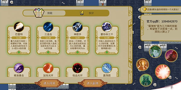 坚韧跟激光斩可替换。吸血也可替换记得选些回复百分比,技能升级优先cd,cd的buff跟罗宾汉可减少40cd,配合技能减cd,技能cd都在4秒内,血量下不来,可达千万穰,单位亿兆京姊穰,技能顺序叠血后怒意加aoe,优先血量,不选攻击,伙伴随意,奖励房优先10概率重置cd。