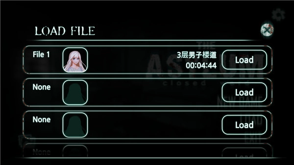2、游戏首页的load查看游戏存档。