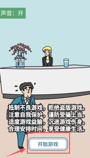 1、点红色箭头指向的白色开始游戏按钮,或留意下方健康游戏提醒文字。