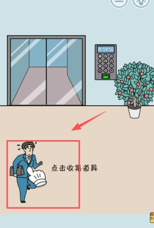 4、按红色箭头指引,点中间偏右的电子密码锁输入密码,或用提示图标辅助过关。