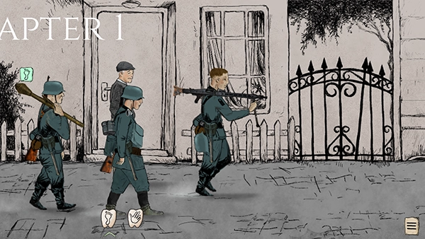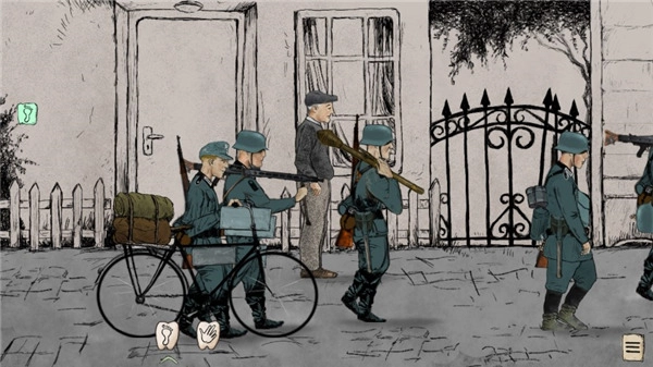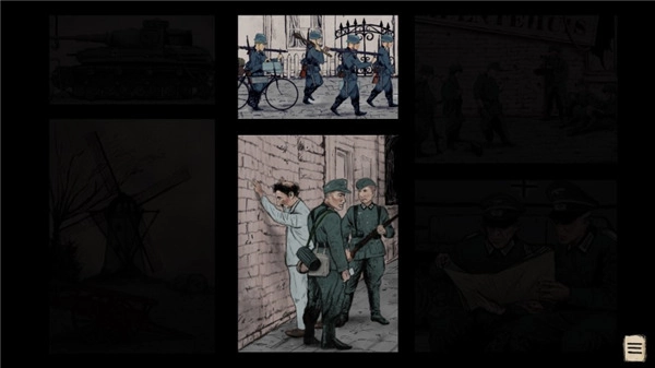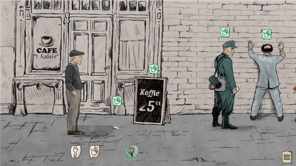 勇敢的人是一款以二战为背景的冒险解谜与射击生存结合的,采用复古画风与写实风格,还原1944年盟军诺曼底登陆后南荷兰的紧张局势。玩家将扮演抵抗组织成员,在纳粹德国占领的废土世界中收集情报、对抗敌军,体验战争的残酷与生存的挑战,游戏以章节形式推进,每章包含独立剧情与谜题。玩家需通过点击场景中的物体(如足印、手掌图标)与角色互动,获取线索并解开谜题,剧情走向受玩家选择影响,多结局设计增强重复游玩价值。例如,选择潜入或正面突袭可能导致不同阵营关系变化,支持多人在线协作,玩家可组队完成任务,通过语音沟通制定策略,游戏还会定期更新新增章节和武器,保持游戏新鲜感。
