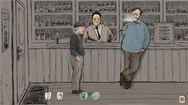 2.然后进入游戏,这里有足印和手掌,点击手掌可以和人物进行对话,还可以拿东西,足印可以在对话完成之后进入下个剧情;