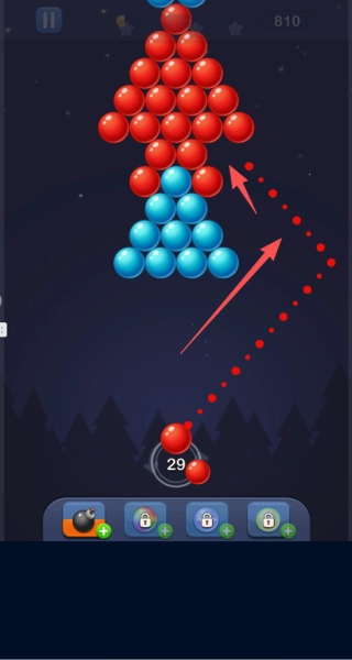 1、滑动屏幕来调整发射角度,点击确认后,气泡会被射向指定方向,从而完成消除操作。
