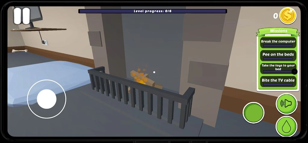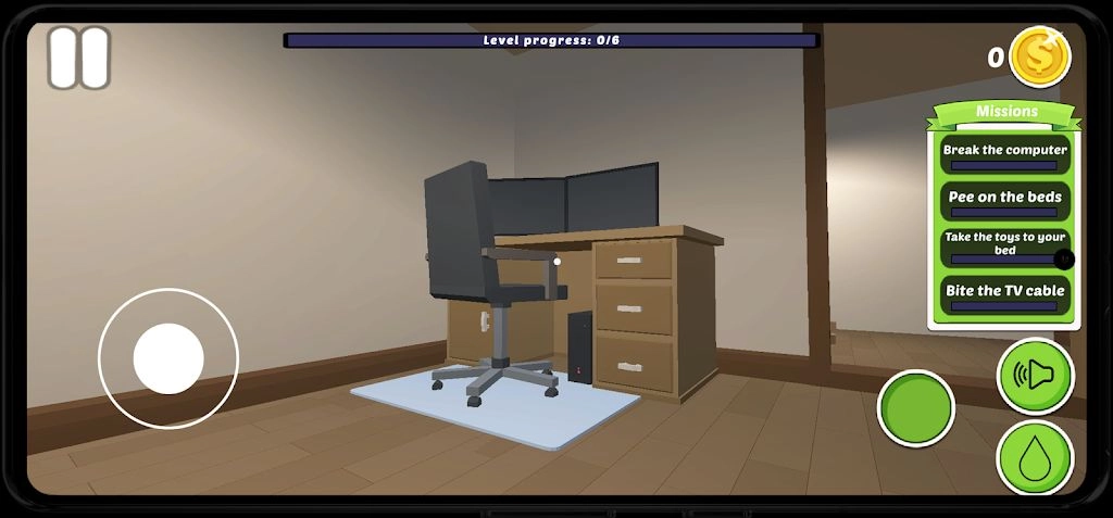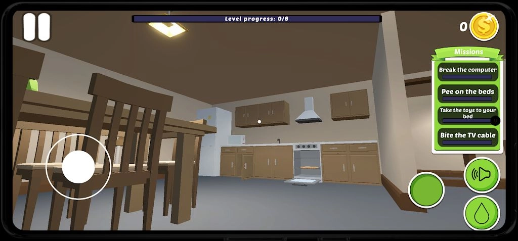 1、一款以狗狗第一人称视角打造的模拟游戏,玩家将化身为狗狗,在家中展开探索。