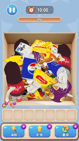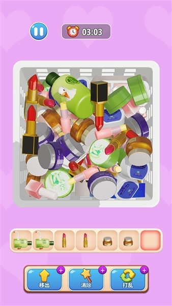 2、关卡中点击3个相同的物体,就能快速去消除。