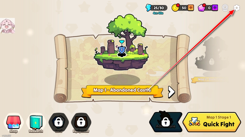 1、切换中文需先完成新手教程,之后在主界面点击右上角的齿轮图标进入设置页面。