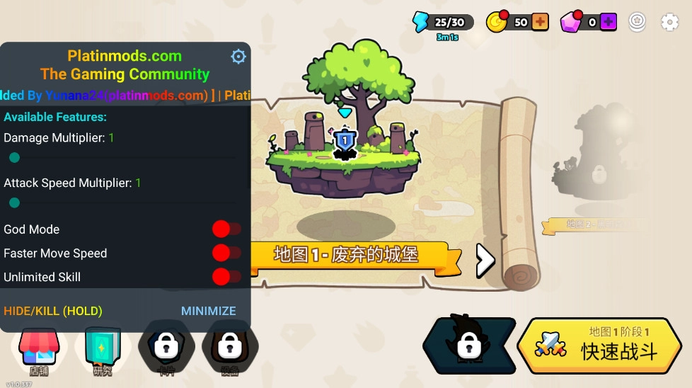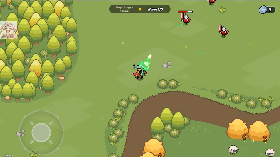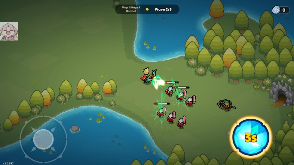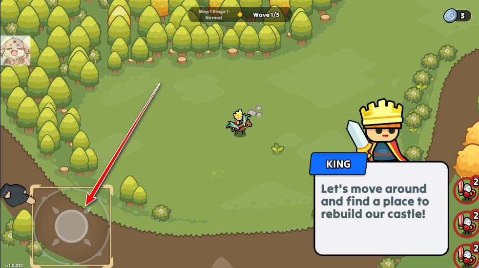 1、在本站安装并运行夜幕王国边境塔防,左下角的虚拟摇杆可以控制角色进行移动