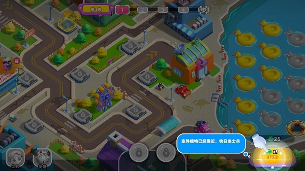 1、变异植物已经靠近,镇长达人请点击这里,召唤士兵。