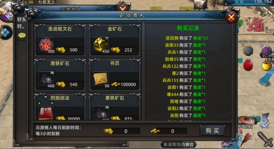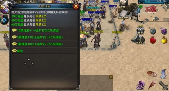 2. 云游商人购买金矿:当你有足够的金币时,可以去找云游商人购买金矿。然后,你可以到广场下方的兑换使者处兑换金矿,以获得大量经验值。