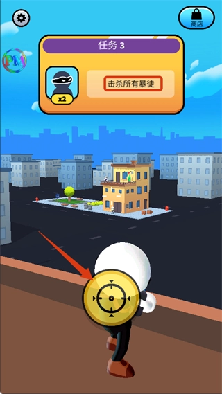 1、明确任务目标,如“任务3击杀所有暴徒(共2名)”,点击瞄准装置进入狙击视角。