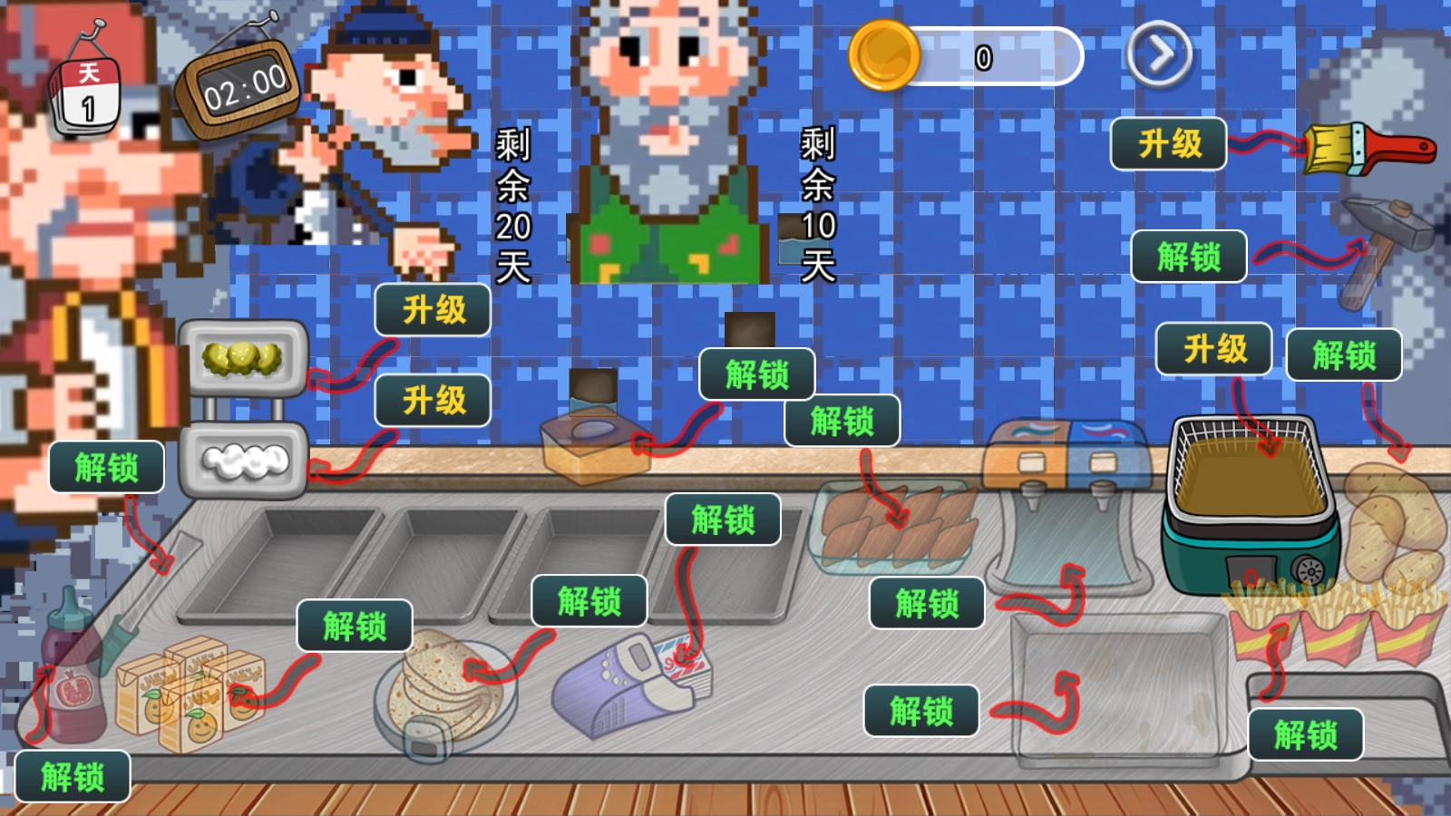合理运用各类食材与厨具设备,通过高效经营赚取充足金币。资金可用于升级设施、扩充菜单或购买便利道具,降低操作难度。