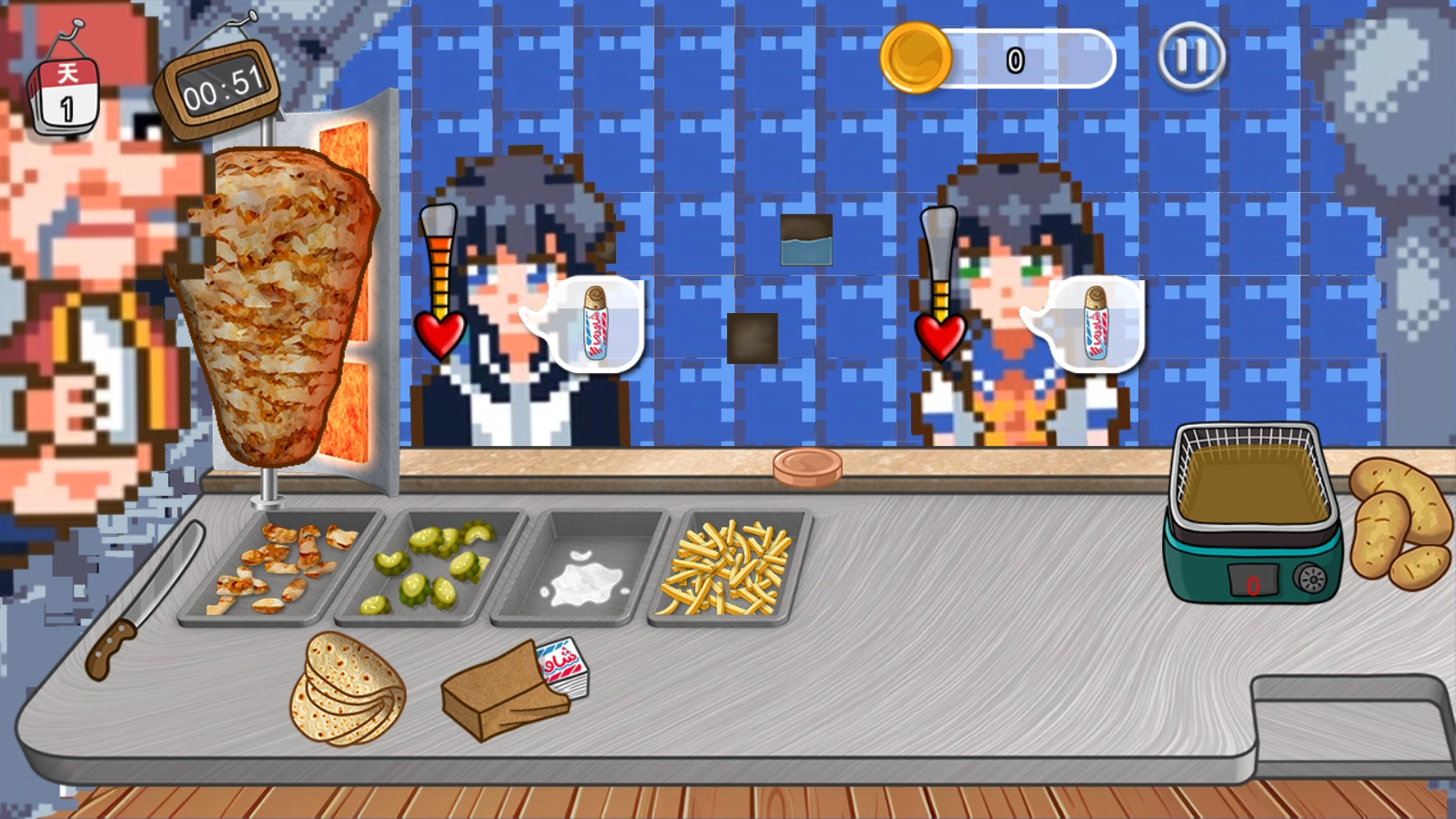 3、点击开始游戏进入营业,我们需要制作顾客需要的菜品。