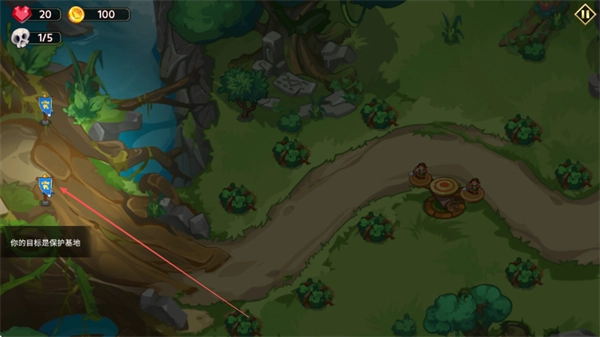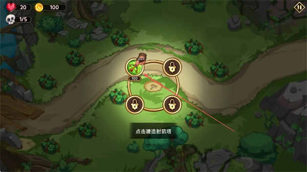 1、花费100金币点击建造射箭塔,在路径的关键位置布置防御设施。