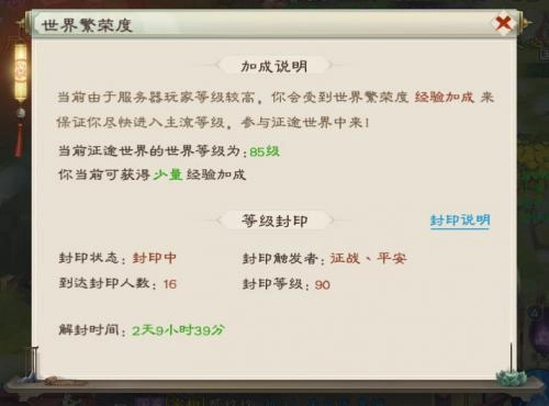 在当前服务器玩家等级普遍较高,而自身等级未达到世界等级时,可以受到世界荣度的经验加成。
