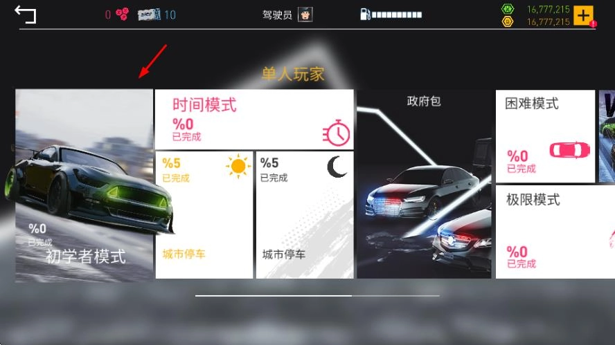 2、选择【初学者模式】,进入游戏驾驶界面。