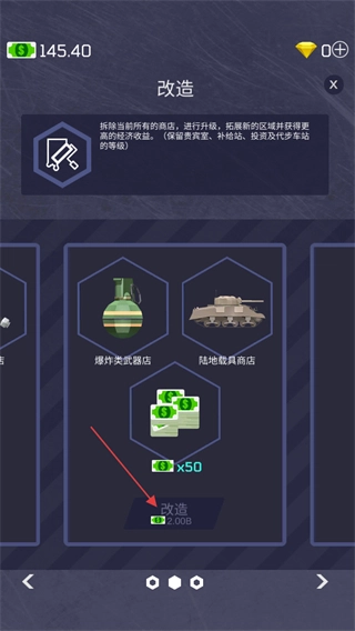 4、当前军火若是经营情况不佳可以在改造内,花费货币进行工厂改造更换商店。