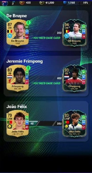 3、收录数千张来自世界各地联赛的球员卡片,从银卡到金卡,从青训新星到传奇巨星,应有尽有,满足收藏控与竞技党的双重乐趣。