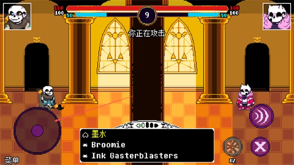 1、操控角色攻击敌方,可选择墨水类技能如InkGasterblasters发起进攻。