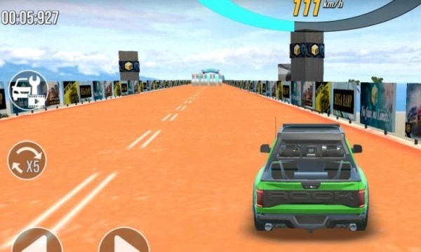 3、选定游戏角色,驾驶赛车从初始位置出发,按照任务要求穿越空中障碍,完成特技动作与路线挑战。