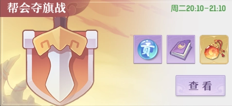 每周二20:10-21:10开启帮会夺旗战(1v1).周六同时段开启联盟夺旗战(2v2)。合力为帮派获得胜利,参与活动即有机会获得帮贡.宠物护符.源生神灵等奖励。你的帮派,需要你的力量!